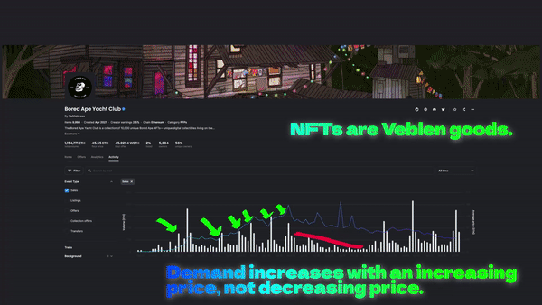 NFTs, in many respects, can be classified as Veblen goods. Their value lies not just in their digital authenticity, uniqueness, or the artist behind them, but also in their perceived scarcity and exclusivity. Owning a high-value NFT is akin to having a rare collectible or luxury item; it’s a status symbol that reflects a certain level of wealth and taste. As such, higher prices can often drive greater demand, as they enhance the perceived prestige and exclusivity of the NFT.